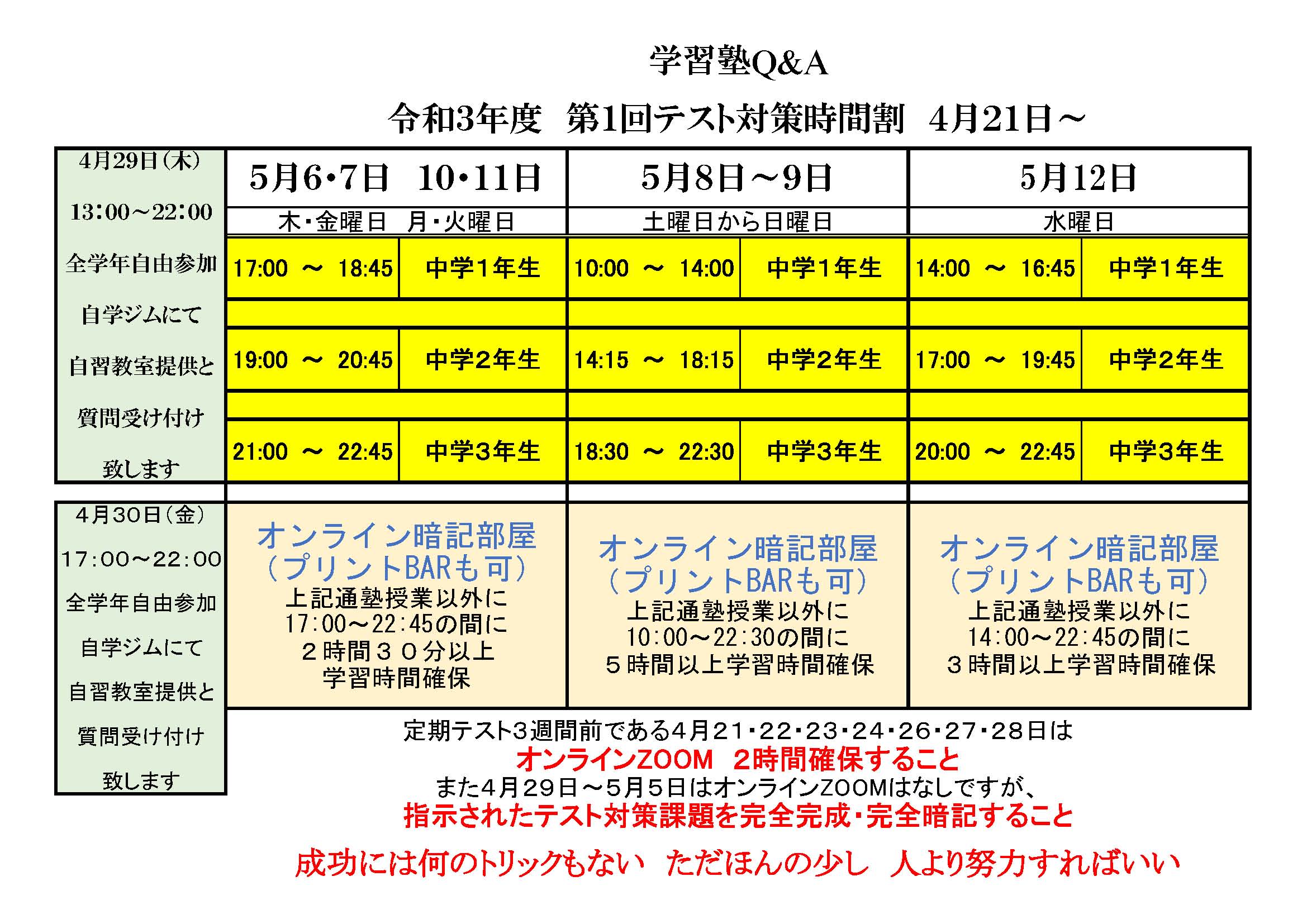 今回の試験範囲は、前学年の復習と、新学年の狭い範囲が試験範囲となります